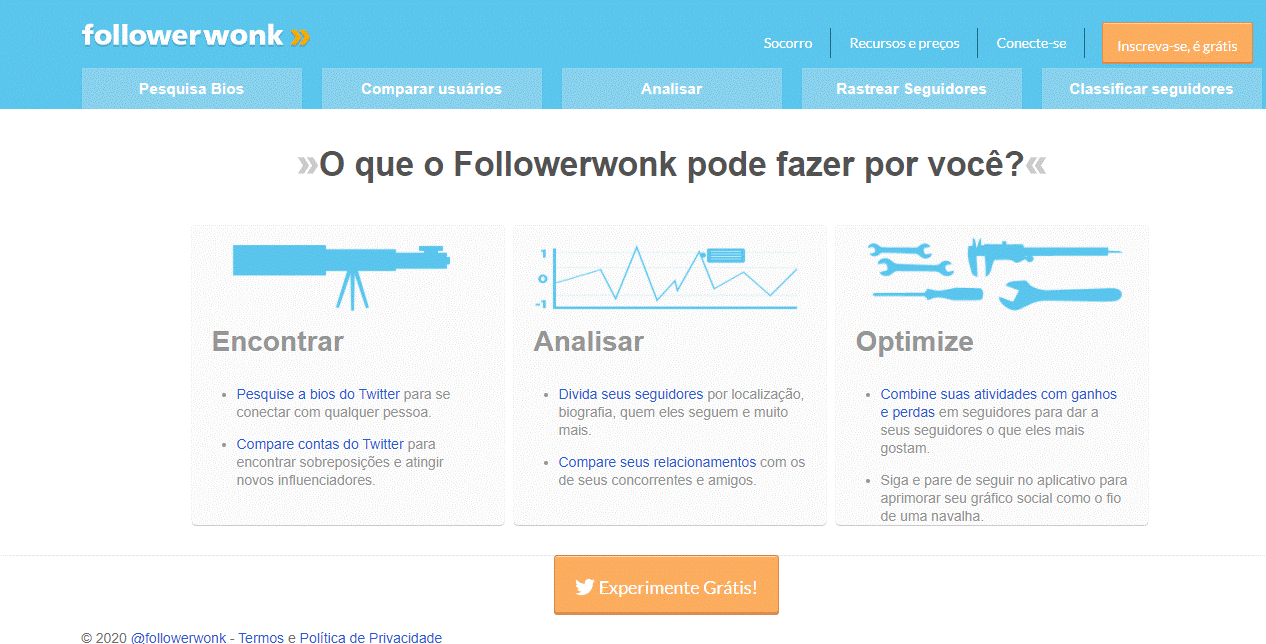 Followerwonk é uma ferramenta de análise para Twitter que permite encontrar, analisar e aumentar seus